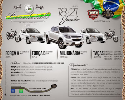 Começa quinta feira dia 18, na cidade de Campo Grande/MS o 3° Brasileirão de Laço Comprido, organizado e promovido pelo CLC, (Circuito de Laço Comprido).