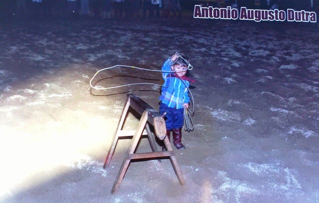 Outro fato marcante aconteceu na cerimonia de abertura com as autoridades presentes, na hora foi contada a historia da criação da vaca parada, modalidade essa que faz parte das provas oficiais regulamentada pelo MTG, e tem suma importância como base para novos praticantes do tiro de laço, e na formação de novos talentos da nossa tradição. Uma prova disso é Antônio Augusto Dutra, criança de apenas um ano de idade que já pratica tiro de laço na vaquinha de madeira e ontem jogou uma armada na abertura solene.